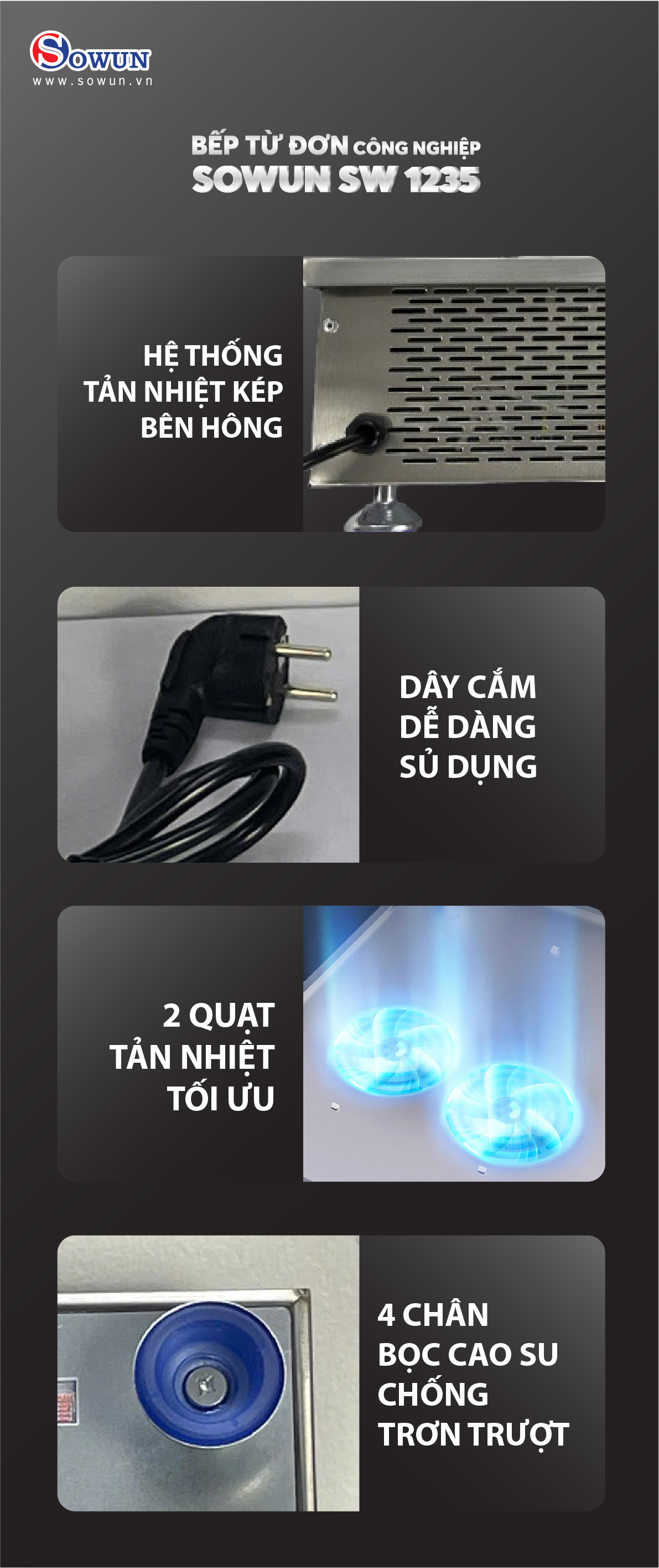 Đặc điểm nổi bật của bếp từ công nghiệp SOWUN SW 1235