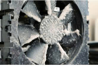 - Bụi bẩn bám trục quạt.