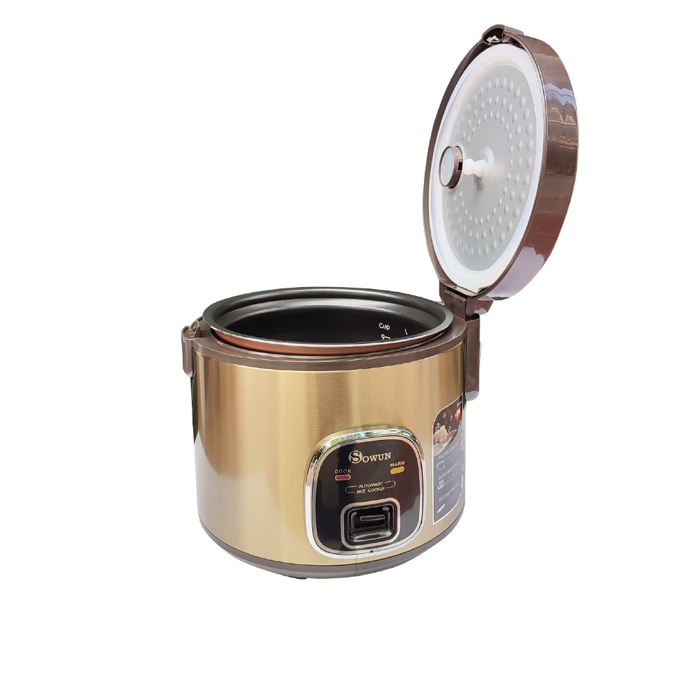 Nồi Cơm Điện Sowun 1,8 lít SW 630 được thiết kế dạng nắp gài âm bản giấu kín sang trọng kết hợp tông màu tươi mới hiện đại, tạo cảm hứng nấu nướng cho người nội trợ và tô điểm thêm cho gian bếp. Ngoài ra, nồi cơm điện Sowun 1,8 lít SW 630 được trang bị nắp gài tự động, quai cầm tích hợp ngay trên nắp, giúp bạn thuận tiện sử dụng.