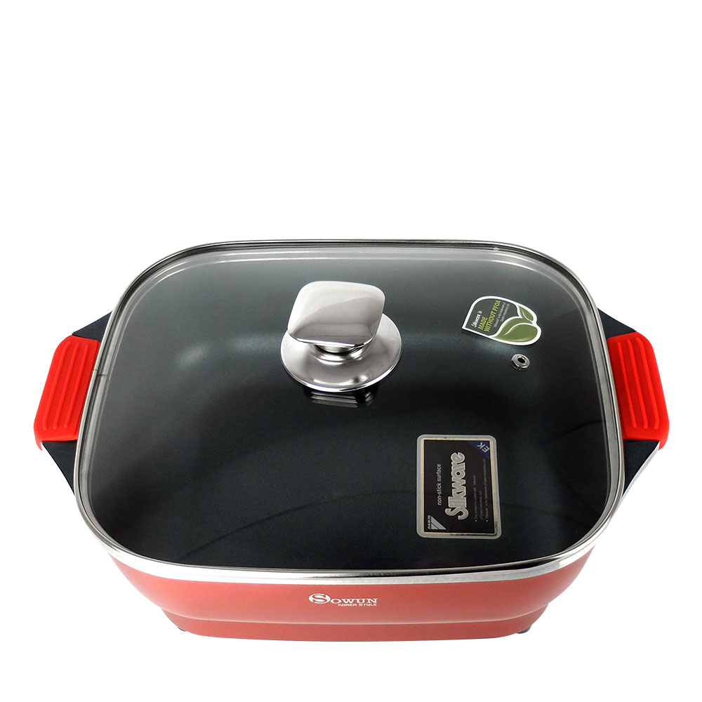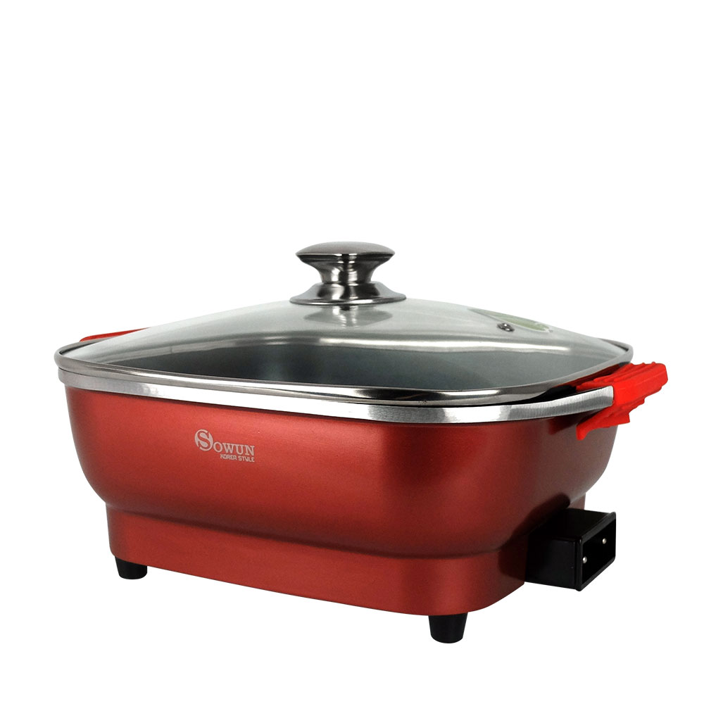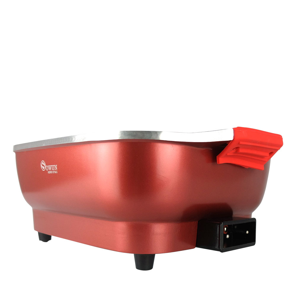 - Nồi lẩu điện Sowun SW 6017 có thiết kế nhỏ gọn, thân nồi được phủ một lớp sơn tĩnh điện màu đỏ nổi bật, sang trọng và bắt mắt.