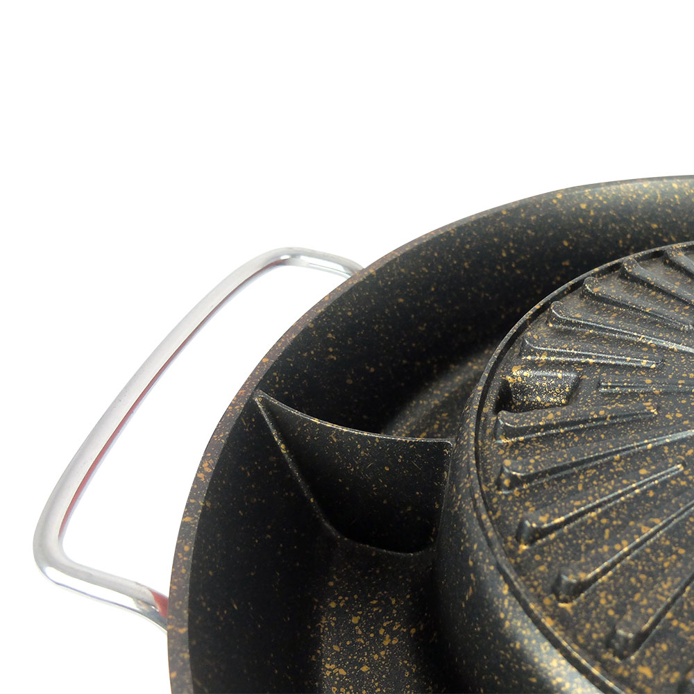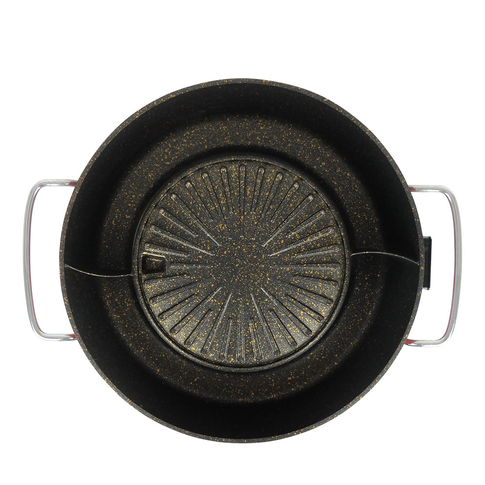 Nồi lẩu điện kết hợp 02 trong 01 vừa nấu lẩu vừa nướng thiết kế gồm 02 ngăn nấu lẩu và 01 khay nướng bên trên, sử dụng nấu lẩu ở dưới và bên trên kết hợp nướng rất thuận tiện cho mọi gia đình trong các buổi sum họp, liên hoan, công sở, nhà hàng…