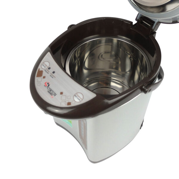 - Bình thuỷ điện Sowun SW 1664 có thiết kế nhỏ gọn, thông minh, màu sắc trang nhã, sang trọng phù hợp với mọi không gian. Sản phẩm gồm có 2 lớp: Vỏ ngoài được làm từ chất liệu nhựa cao cấp, siêu bền, cách nhiệt tốt; Lõi bình được làm từ chất liệu inox không hoen gỉ, dẫn nhiệt tốt, an toàn cho sức khỏe người sử dụng.